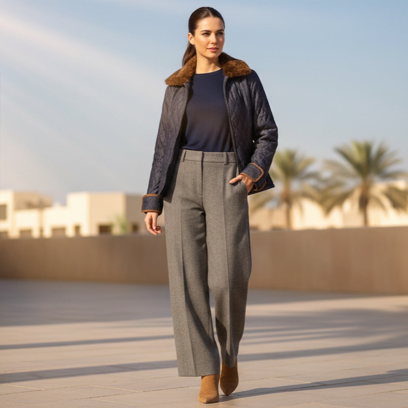 Elevate your winter wardrobe with our Quilted Denim Puff Jacket with Brown Fur Collar, designed for effortless elegance and everyday warmth. Crafted from structured denim fabric, this jacket features a diamond quilted pattern that adds texture while maintaining a sleek, modern silhouette.